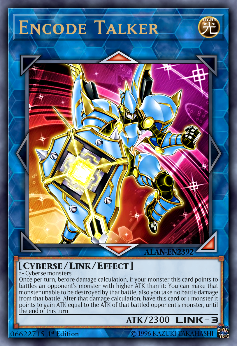 Once per turn, if your monster this card points to battles an opponent's monster with higher ATK, before damage calculation: You can make your monster unable to be destroyed by that battle, you take no battle damage from that battle, also, after damage calculation, this card or 1 monster it points to gains ATK equal to the current ATK of that opponent's monster until the end of this turn.